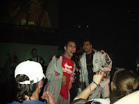 La semana pasada estuvimos viendo en la discoteca Aural el concierto de "La excepción", la verdad es que nos lo pasamos muy bien y filmamos la actuación para que los que os la perdisteis, la podais ver en los futuros números del fanzine pussytron. Despues del concierto el Langui muy amablemente se hizo unas fotos con nosotros